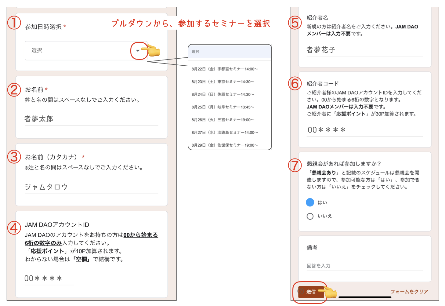 JAMDAOが主催するZOOMイベントに参加した方が「応援ポイント」を申請するフォームです。