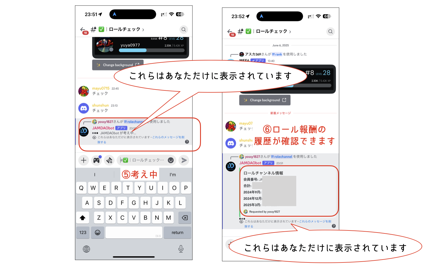 💡Discordのスラッシュコマンド機能を使って、自分のロール報酬の内容が確認できます
