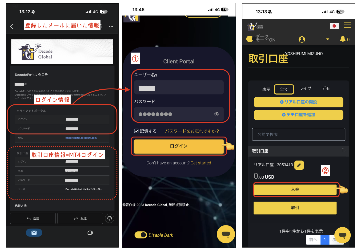 「Decode Fx」に入金した金額が反映したら、完了です。