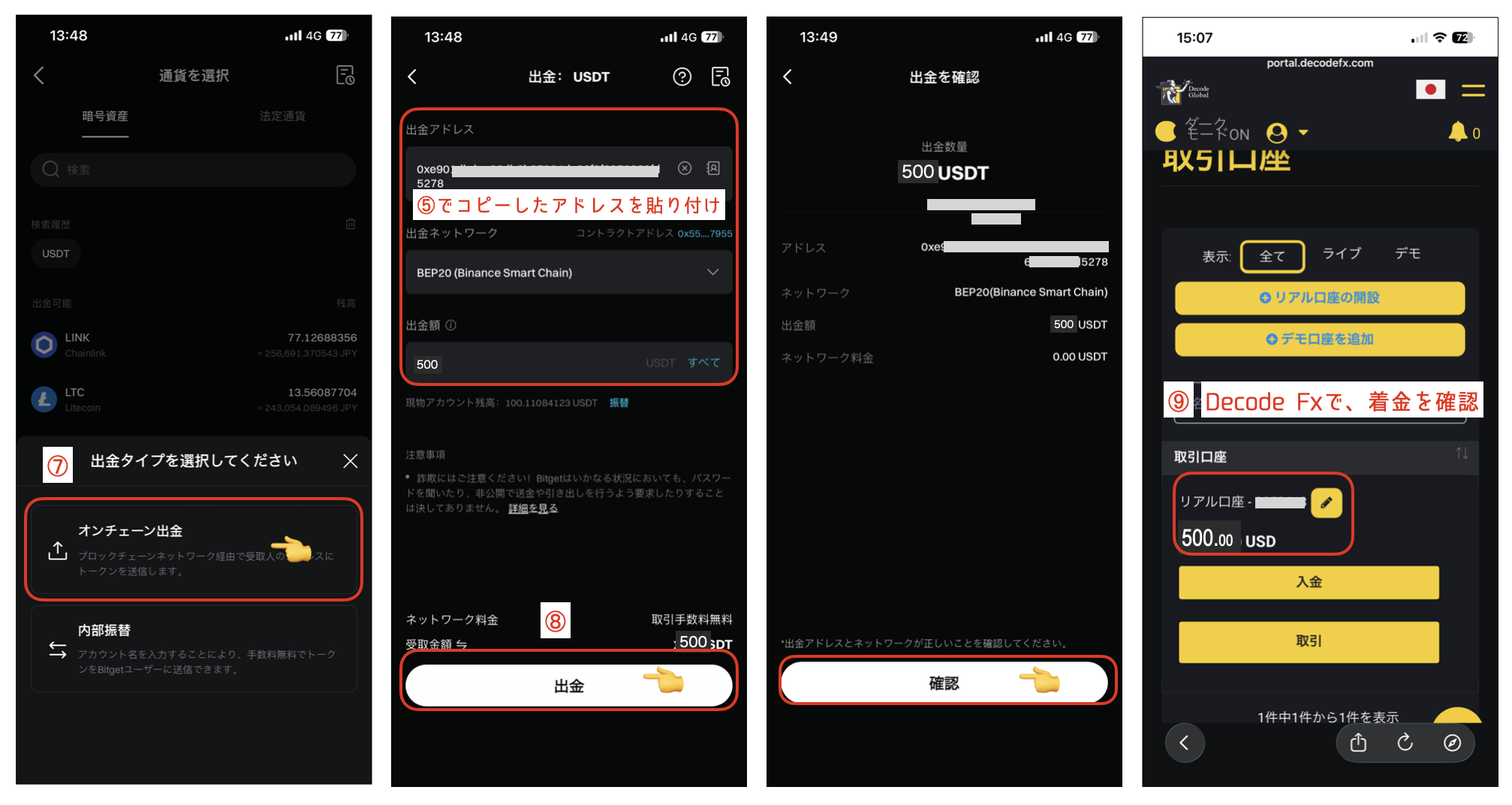 ⚠️ここで、チェーンを間違えると、USDTが届かず消失してしまうので、再確認しましょう。