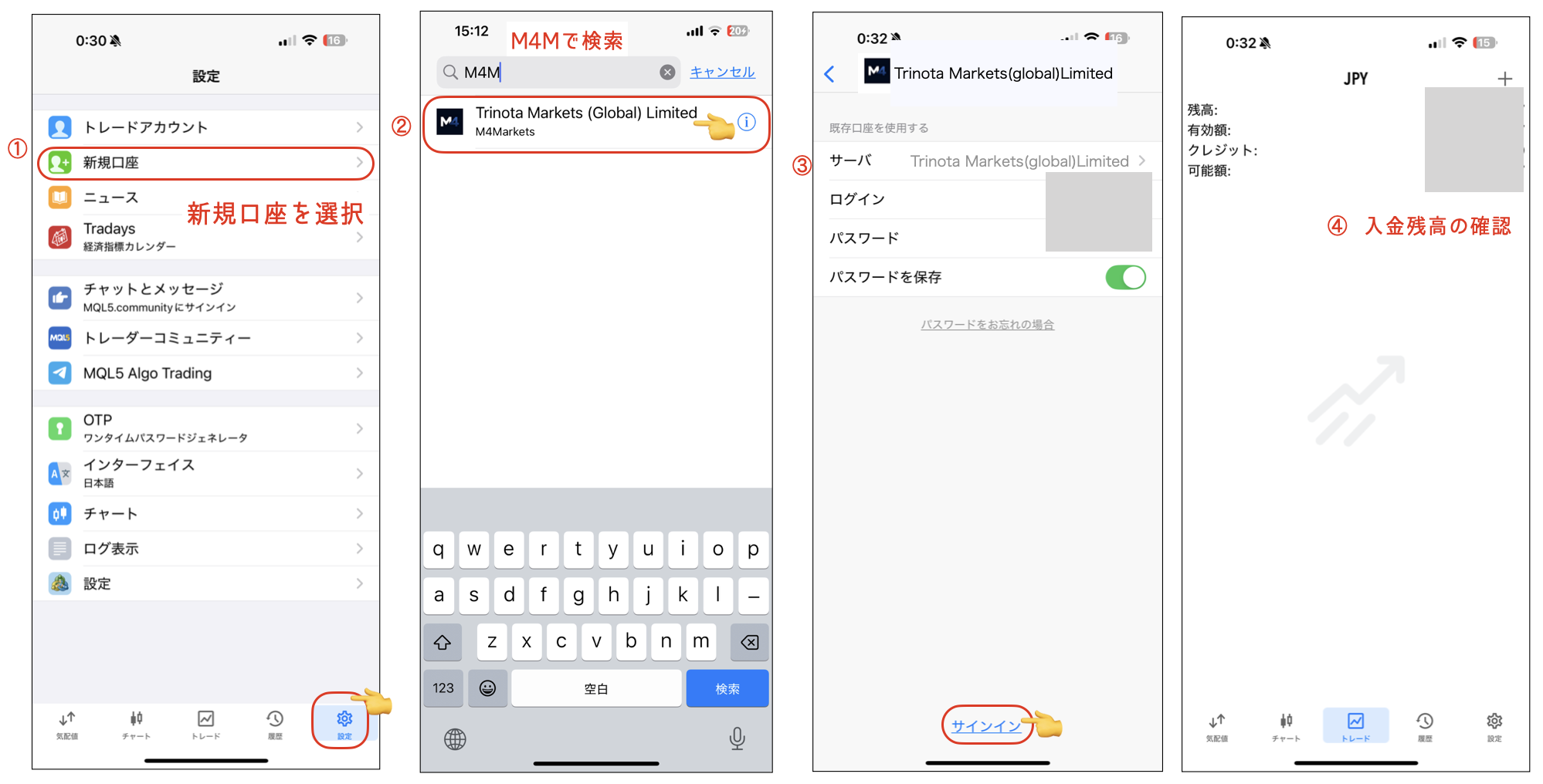 「M4M」と入力して、候補として表示される「Trinota Markets(Global)Limited」をタップ。