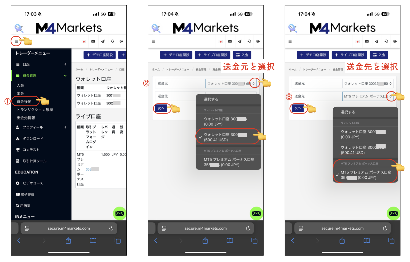 ③送金先を選択