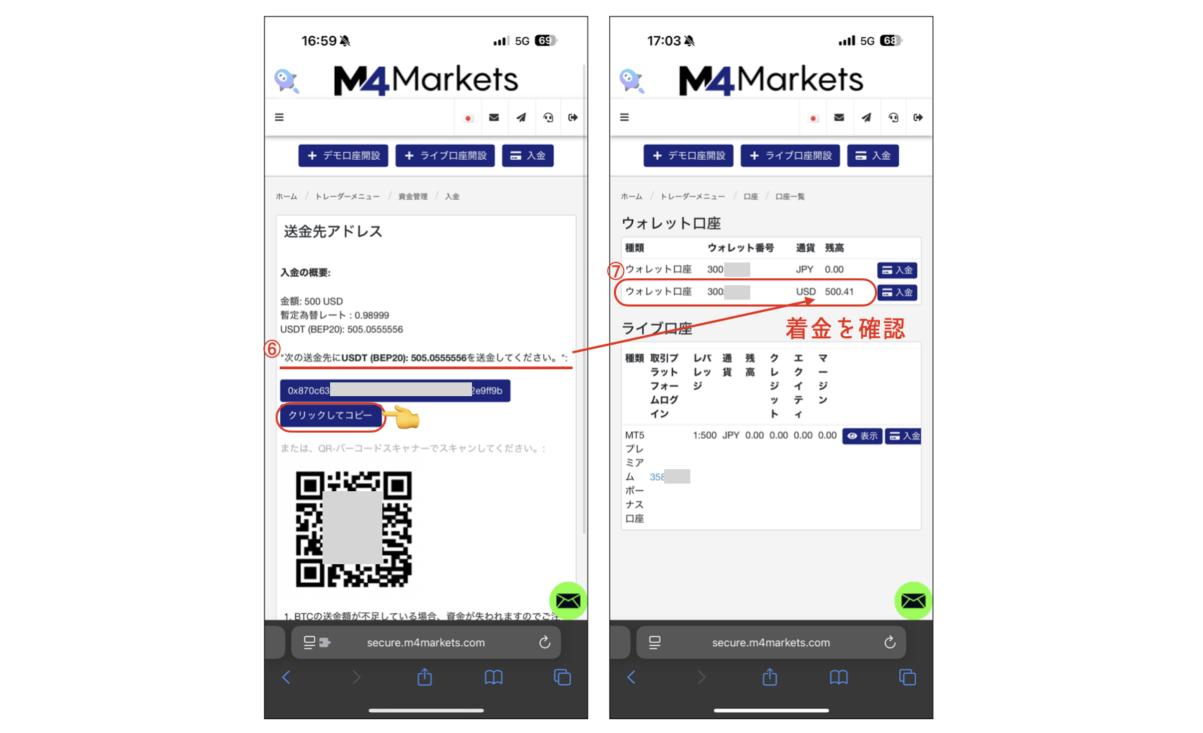 「M4 Markets」のウォレット口座に着金すれば、完了です。