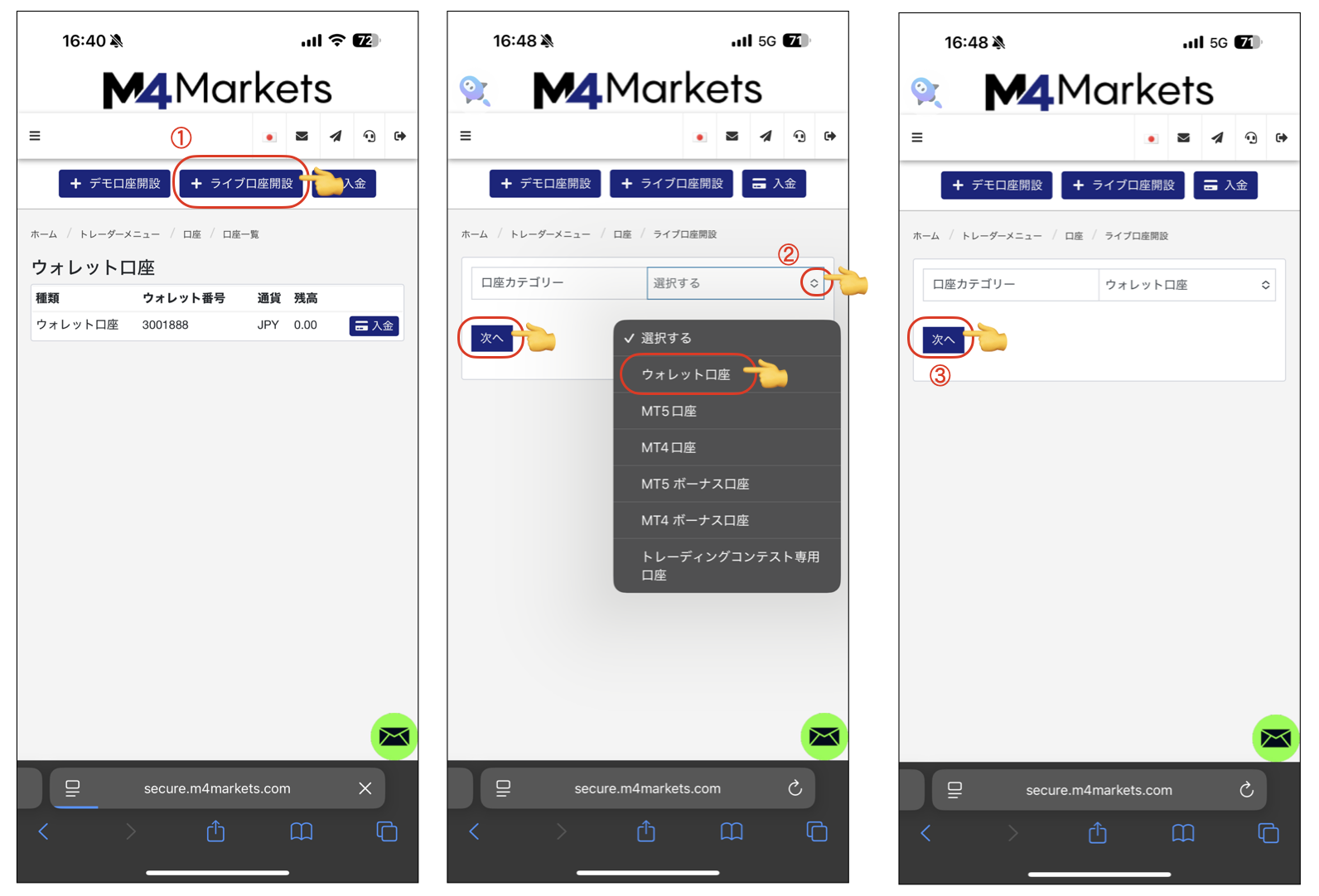 M4 Marketsウォレット口座開設