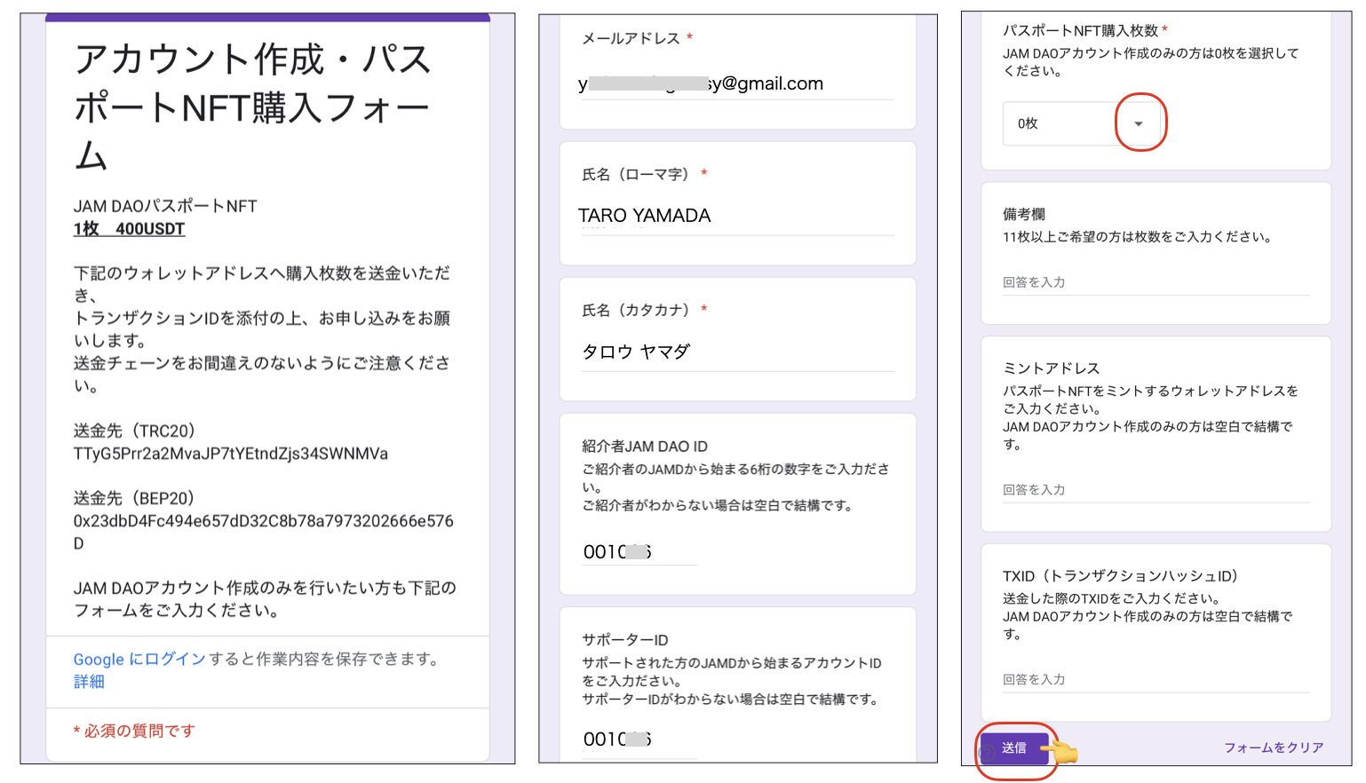 サポーターのIDがわからない場合や、無料登録の場合は空欄で結構です。