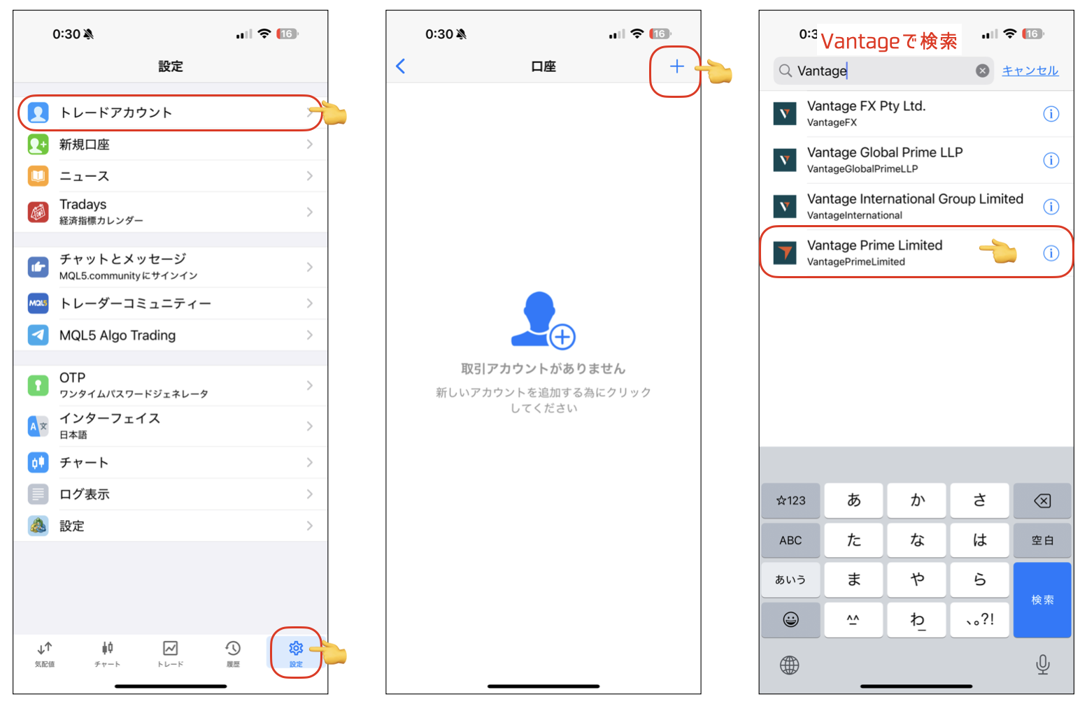 「Vantage」で検索して、「Vantage Prime Limited」サーバーをタップします。