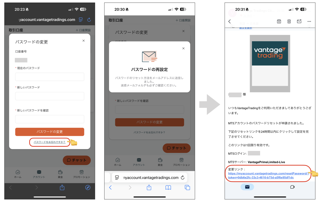 4、登録したメールアドレスにリセット方法が届く