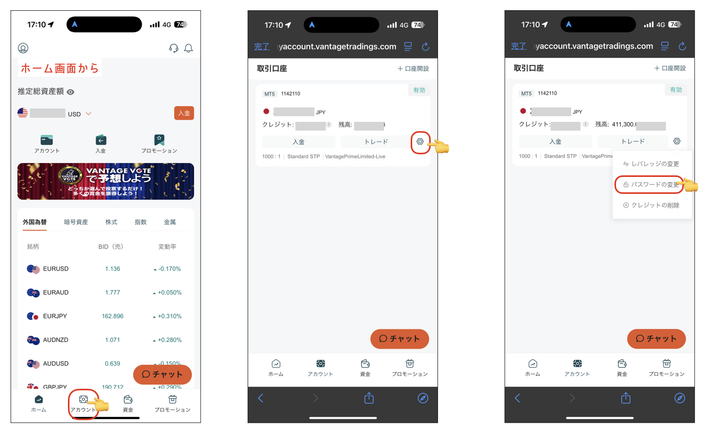 MT5のログインパスワードを忘れてしまったり、自分で管理しやすいパスワードに変更する方法です。