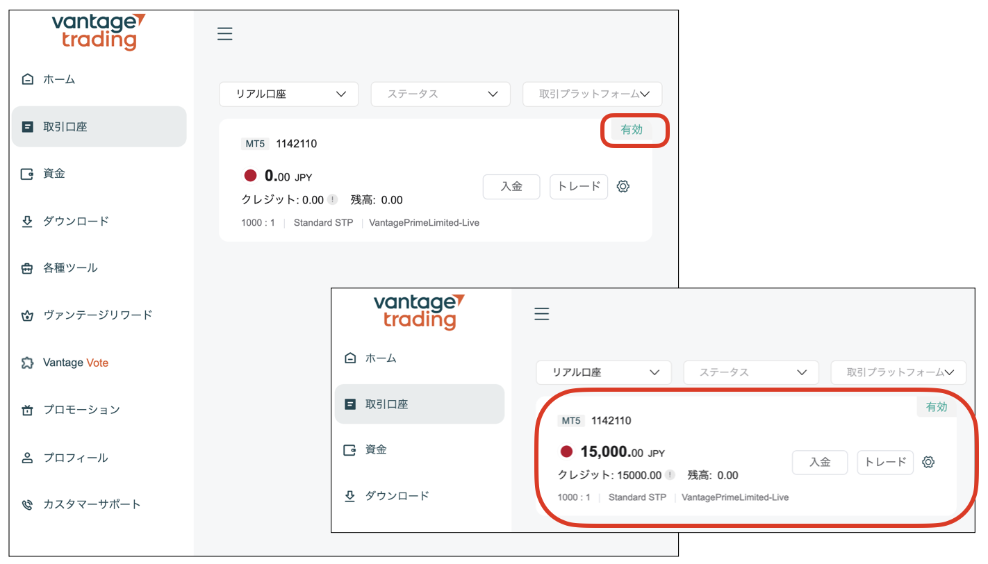 Vantage Tradingの口座開設、お疲れ様でした。