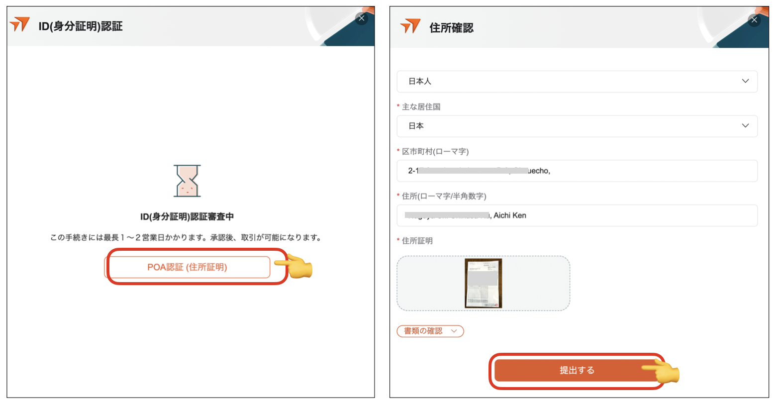 次に、POA(PROOF OF ADDRESS)認証(住所証明)に進みます。