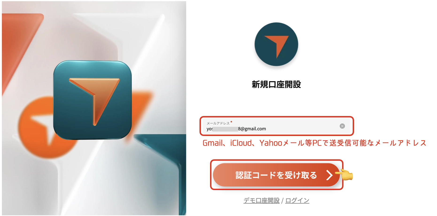 2、認証コードを受け取る