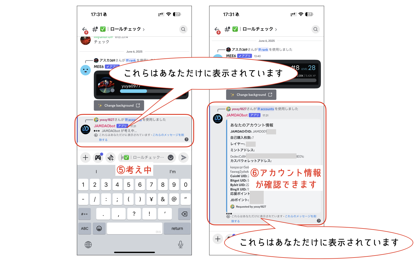 💡Discordのスラッシュコマンド機能を使って、自分の登録内容が確認できます