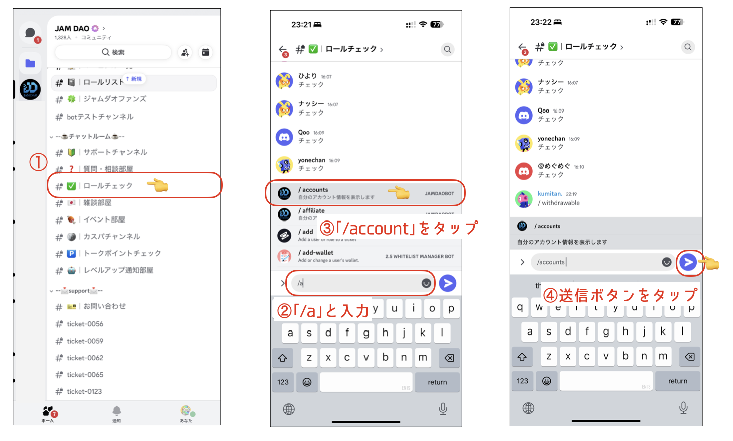 1、Discordの「✅ロールチェック」チャンネルをタップ