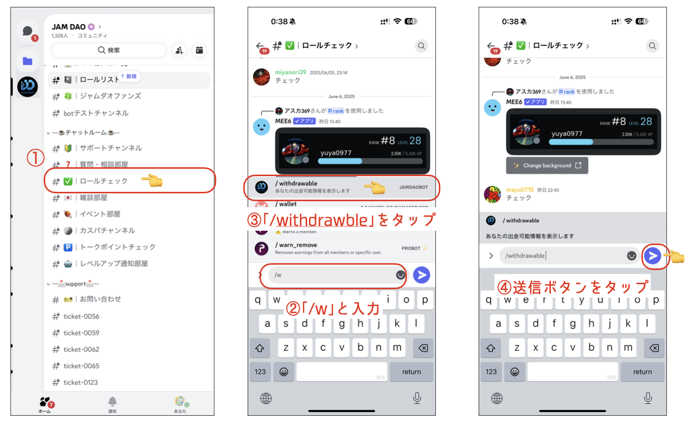 💡Discordスラッシュコマンド機能を使って、出金可能額を確認できます