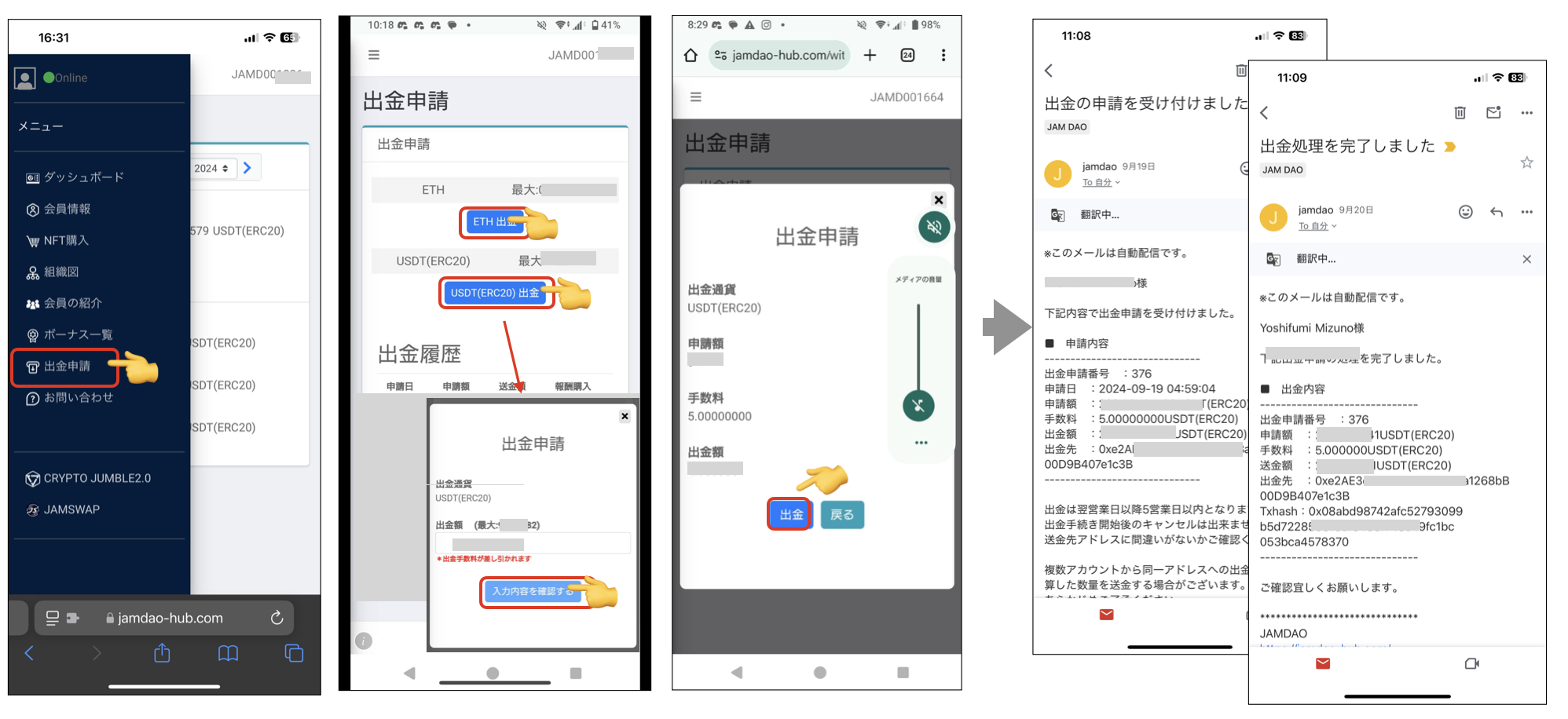 これは、例えば、パスポートNFTの決済通貨がUSDTであれば、出金もUSDT(チェーン規格はERC20)になります。